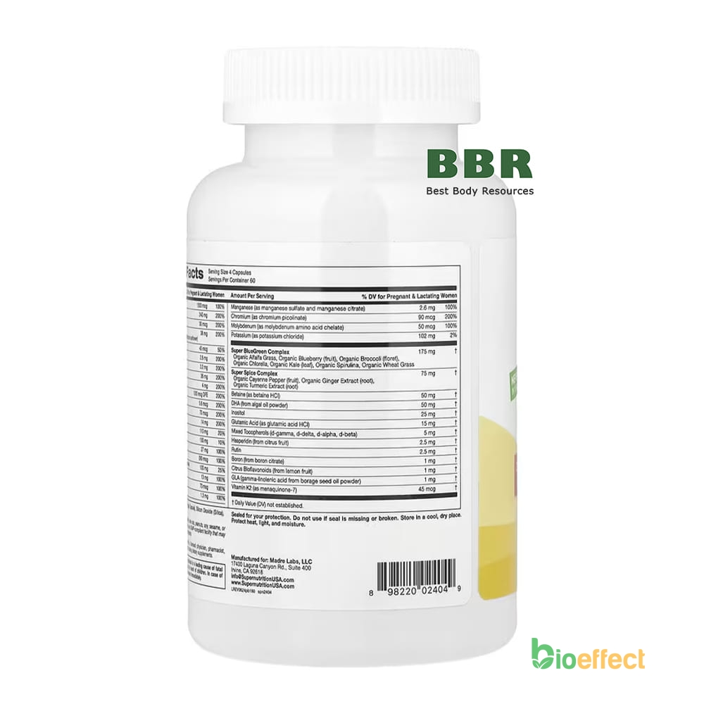 Prenatal Blend Support Pre & Postnatal Health 240 Caps, Super Nutrition является сертифицированным товаром и имеет подтвержденный сертификат качества от производителя.